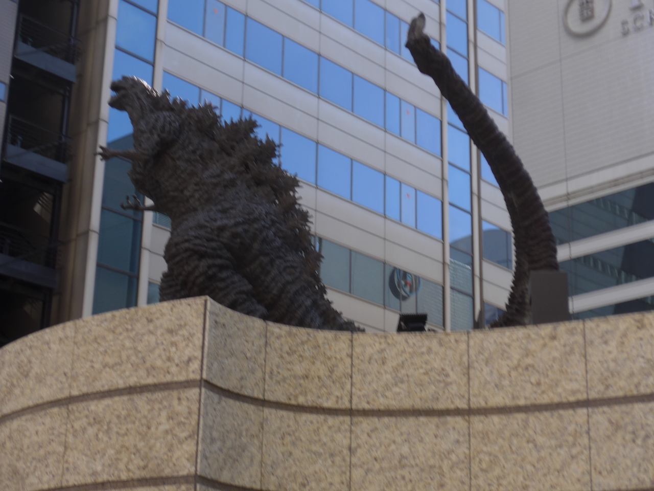 日比谷の「ゴジラ像」、今にも東京の街を歩き回りそうな迫力がありました!!