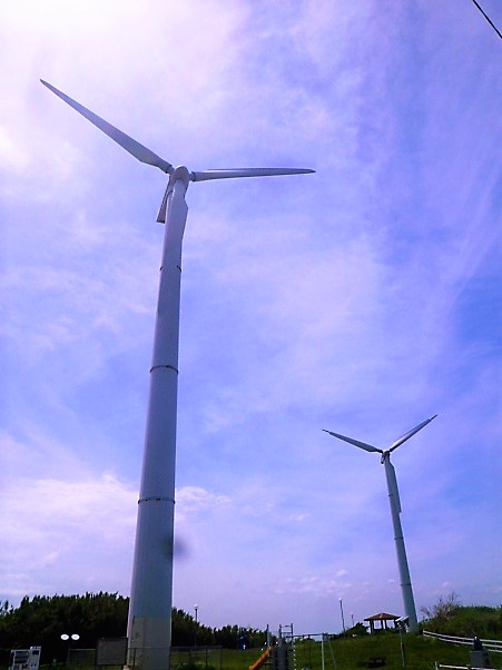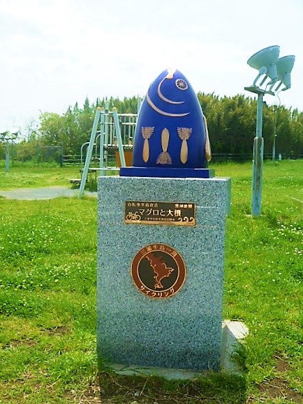 東海岸ドライブコース(三浦海岸→三崎港)を走っていると二枚の風力発電装置が見えてきました。近づくと公園;宮川公園 でした…専用駐車場も。風力発電装置は風が無風で動いてないでした(珍しい?)。 また、三浦市の特産品`マグロと大根`碑もあり観光客向け?でしたが、遊具/東屋/展望台もあって居住民の広い公園でした;やはりですね!。