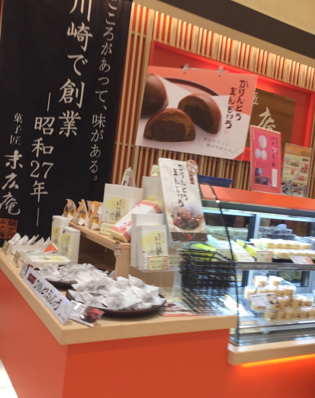 川崎発祥の和菓子屋さんです。かりんとうまんじゅうを購入しました。カリッとしていて美味しかったです。日本茶との相性が抜群でした。他にもチーズスフレやプリンなどがありそちらも人気商品のようで美味しそうでした。