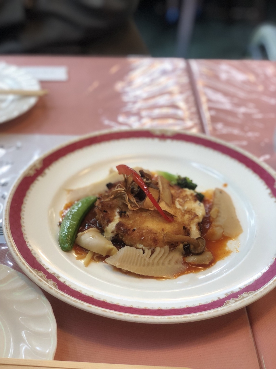 ヒレステーキセットに単品で白身魚のカニクリームソース衣焼きを注文。