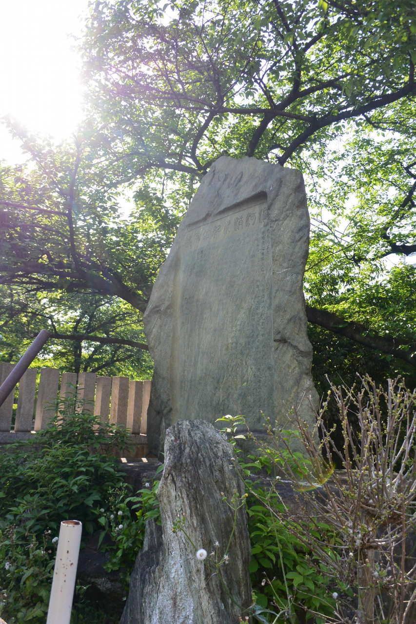櫻宮神社境内、本殿に向かって左手前にあります。かなり大きな碑ですが、字体が独特でかなり読みにくいです。淀川の川も「河」と表記されていました。明治18年の洪水の際大川では、堤防をわざと決壊させて平地にたまっていた水を川に戻す「わざと切れ」を行いました。