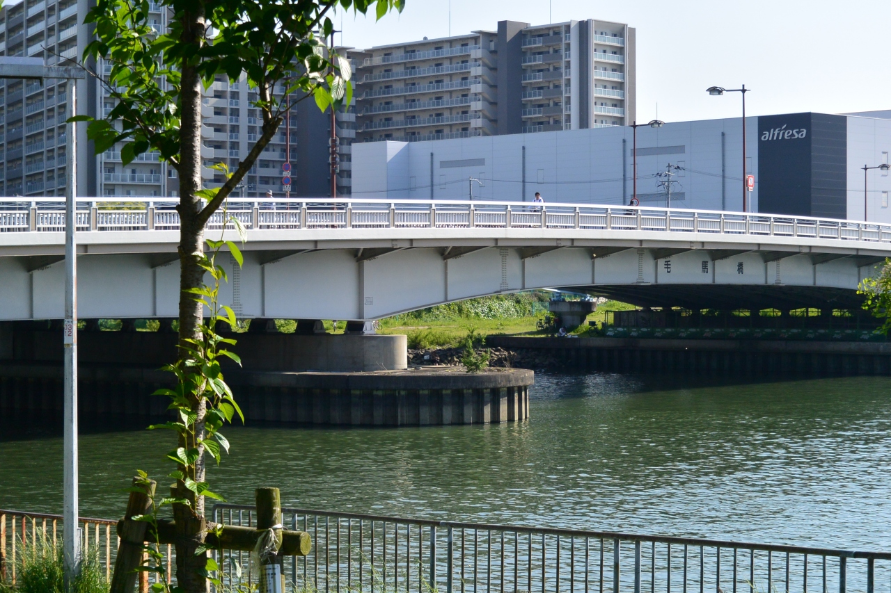 淀川が新淀川と分かれて大川になって初めて出会う橋です。大川の最上流ですね。橋自体は装飾もなくシンプルなデザインですが、車の量はけっこう多いです。毛馬閘門や毛馬洗堰を正面から見るにはベストポジションです。