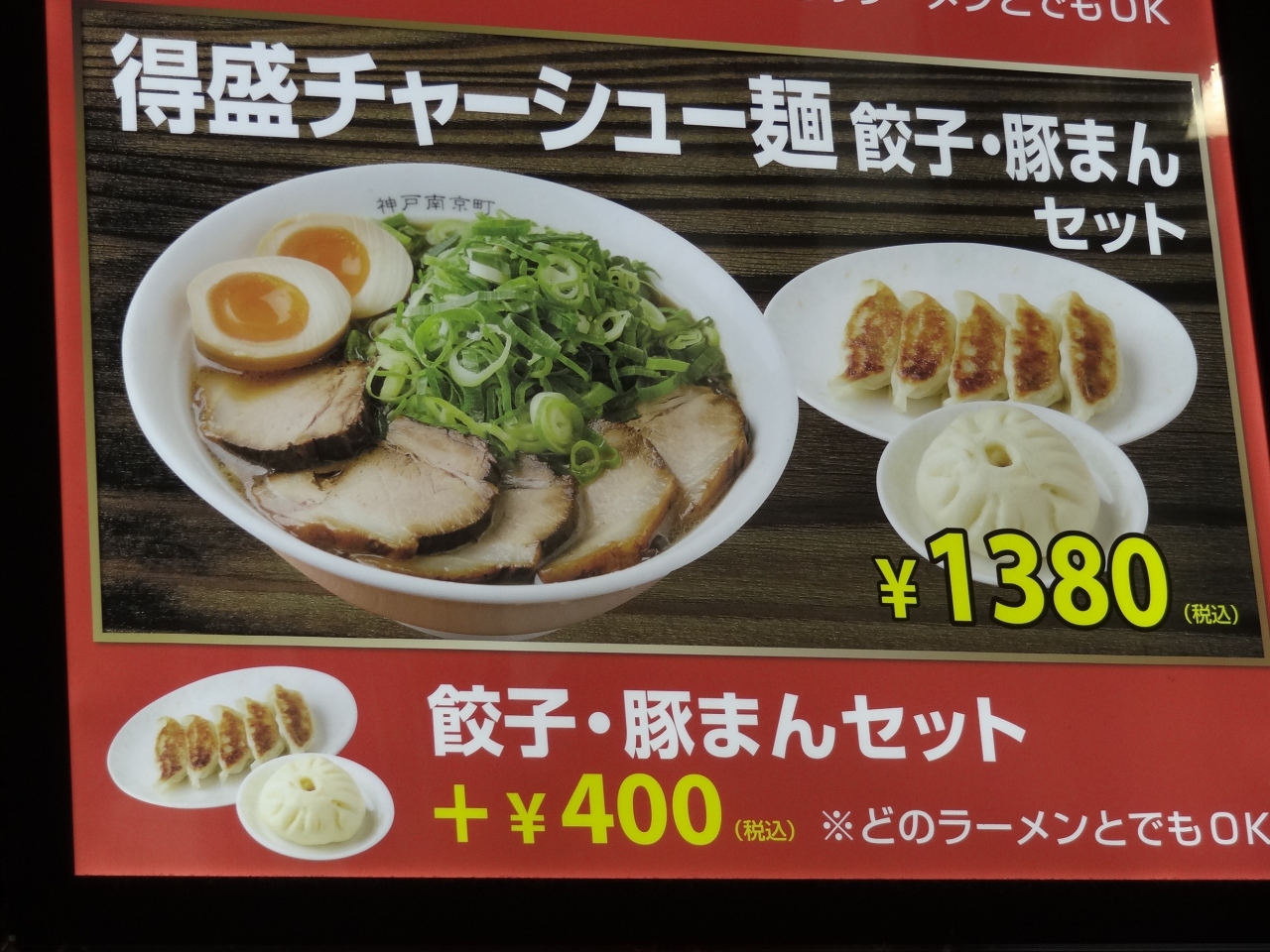 アウトレットパーク内にある中華料理店です。他の食事店との集合施設で、気楽に利用できます。この日は風が強くて小雨が時折降る寒い日でしたので、体が温まる料理を食べたいと思い、数ある食事処からこの中華料理店を選びました。オーダーしたのは6種類ほどあるセットメニューから「得盛チャーシュー麺 餃子・豚まんセット」(長い名前なので、覚えてから店員さんに言うのが難しい!)。チャーシューは3枚、刻みねぎが多め、スープは濃厚。麺は中太タイプでスープとのからみがいい。餃子は日本人好みの焼き餃子が五個。ジューシーな餃子に満足。豚まんがデザート代わりでも食べ応えあり。ボリュームたっぷりのセットで冷えた体は温まりました。この店を選んでラッキー!と実感しました。