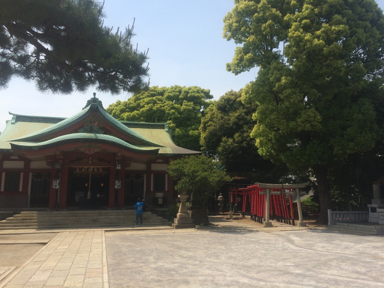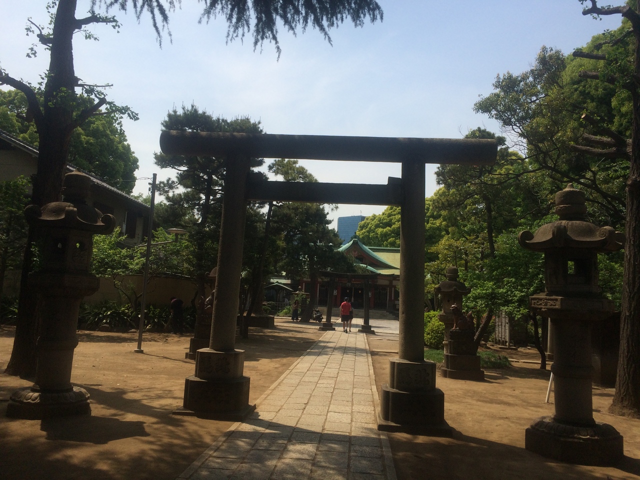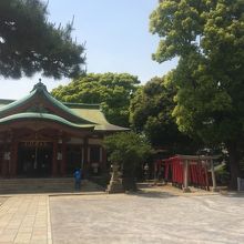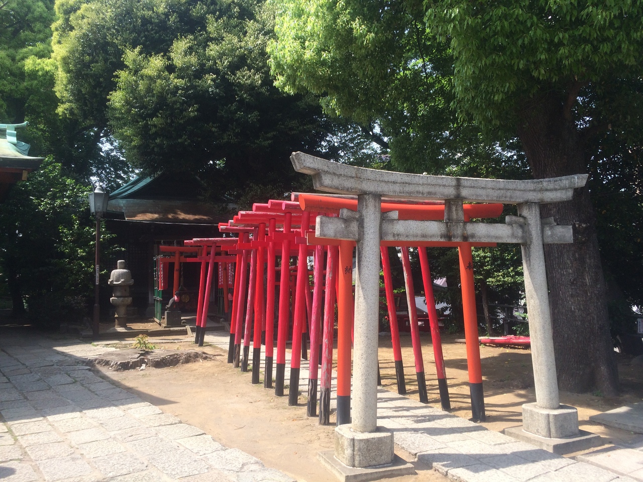 1分もかからず上れますが階段が急でした。境内が少し高台にあるので品川のビル群を望むことが出来ます。品川周辺の雑踏が嘘のような静かな場所でした。江戸時代の宿場町だけあって、包丁塚、ネギとカブの説明看板等がありました。