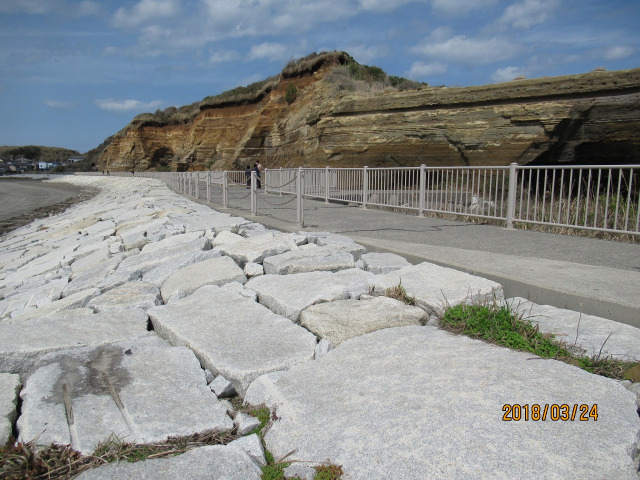 入口から、1KMくらいあるくと、断崖絶壁の地層が現れます。