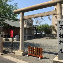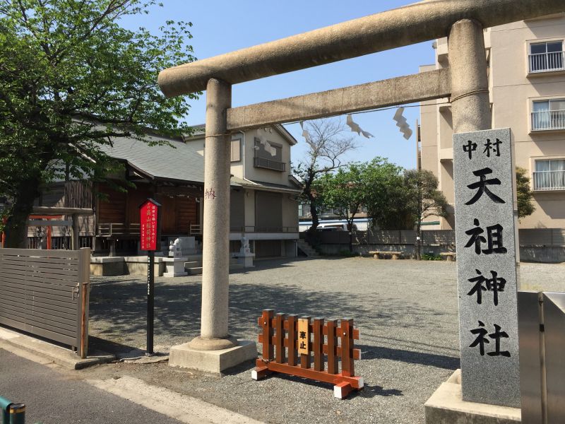 道路は片側1車線で交通量もそれなりにある上に、南側(公園側)の歩道は狭くてある国は危険なので、北側(神社)の歩道を歩く必要があります。よって、この時期、日影がなくて暑かったです。中村天祖神社の敷地内に高山稲荷神社があります。
