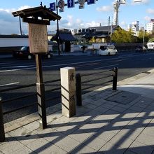 安居神社を南側の参道から国道25号に出てきたあたりに立て札がありました。