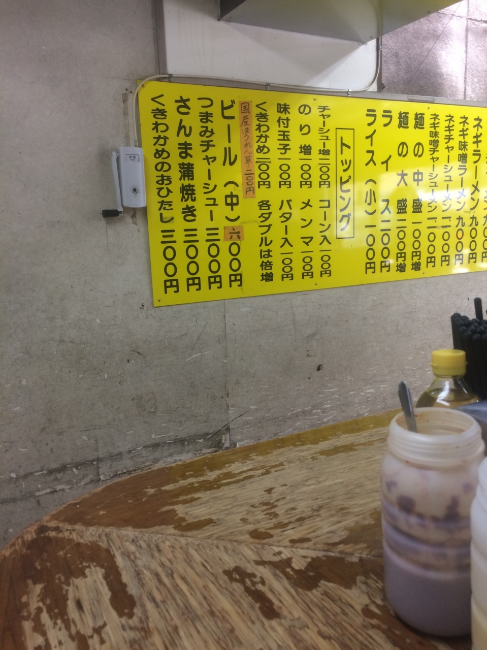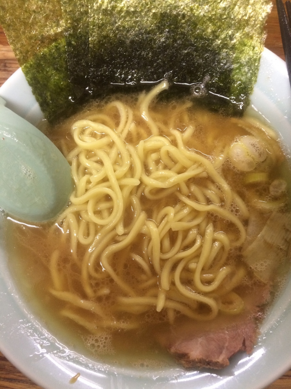 国道15号線沿いにあるラーメン屋です。古い店でカウンターのみの店舗で20人ぐらい座れます。スタンダードなラーメンを注文。スープの上部は脂が浮いていて麺太麺。スープはマイルドな感じで美味しい。ノリ3枚、チャーシュー、ネギが入っていました。水はセルフサービスです。