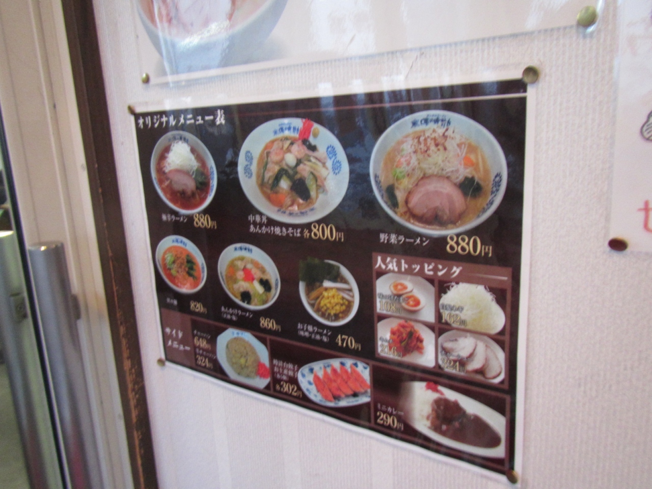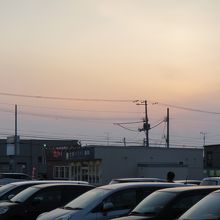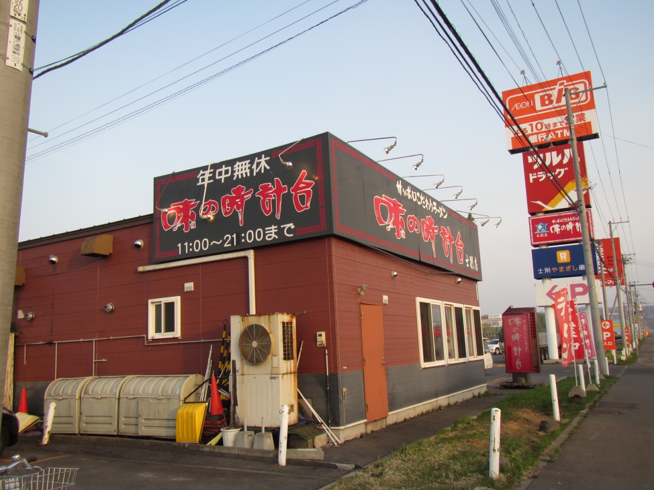 すぐ近くに同業の山岡家がありますが、この時間帯では夕日の雰囲気が気に入り、時計台の方を選びました。