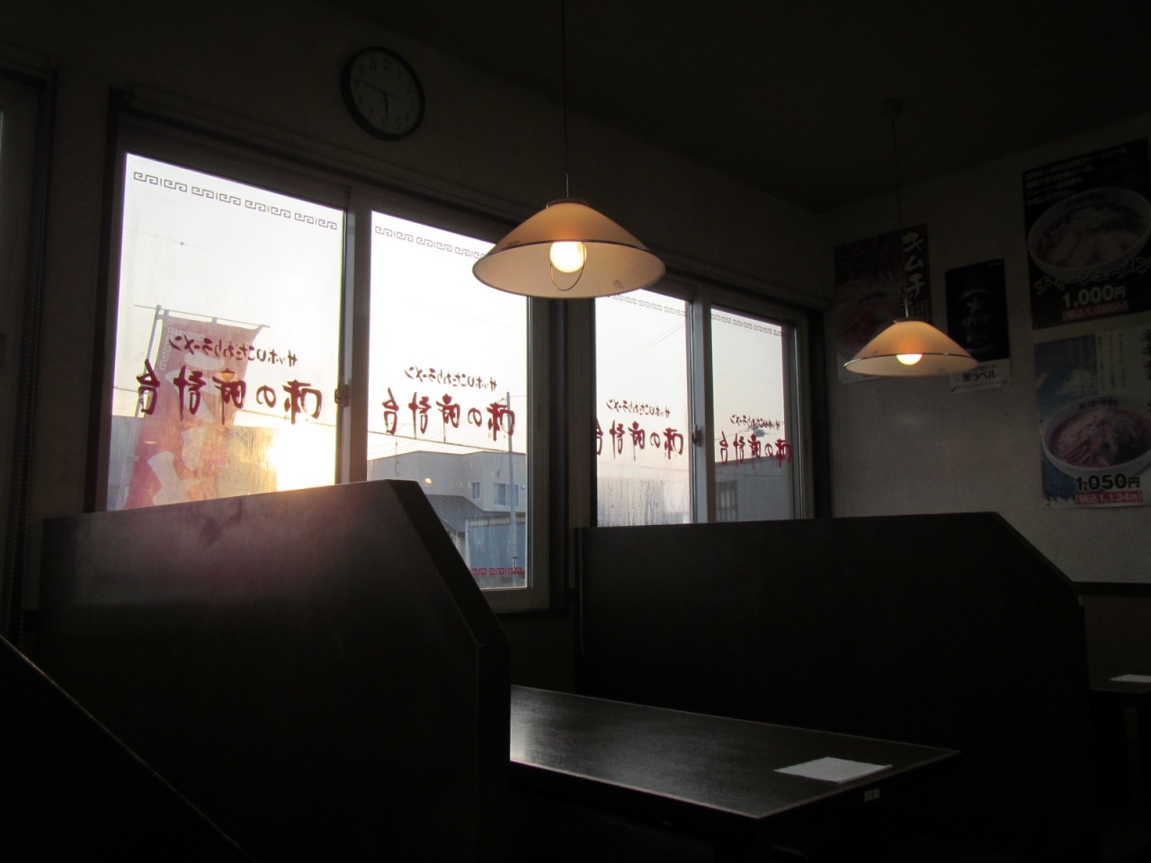 夕方に訪れると、店内に夕日が差し込み、しみじみとした雰囲気でラーメンを味わえます。