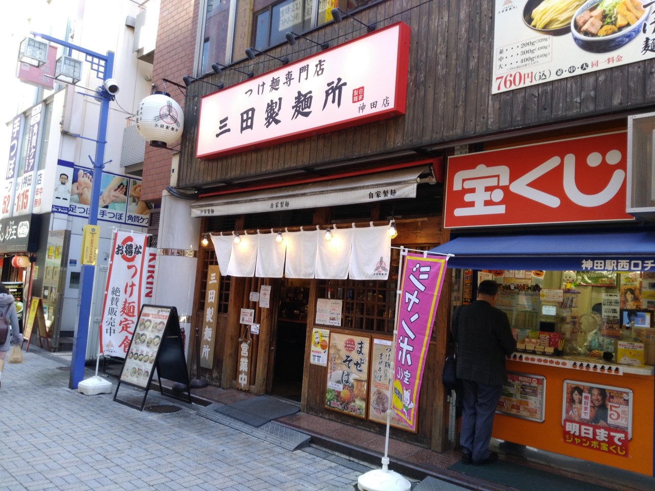 JR神田駅西口からまっすぐ商店街を歩いてほんの3分で三田製麺所 神田店があります。神田はラーメン屋も多いのですが、つけ麺を食べたくなりましたので、こちらのお店にてランチとしました。三田製麺所は都内随所にありますので安心して入れます。豚骨魚介系の濃厚なつけ麺。並盛、中盛、大盛が同じ値段設定なので安心です。注文は中盛。充分にお腹満タンになりました。
