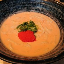 明太子クリームのうどんを食べましたが、明太子が太い麺に絡まってとてもおいしかったです。