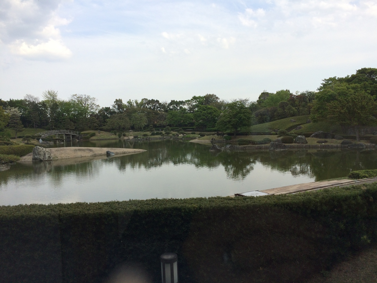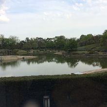 入場料は100円でした。障害者と付き添いの方は50円で、母が利用しました。砂利の駐車場は横にあり、平日はだいたい空いています。室内は畳の部屋があり、能楽の練習をしている団体がいました。手入れされた木々や、芝、桜、岩、竹があり、池が真ん中にあります。日本庭園です。