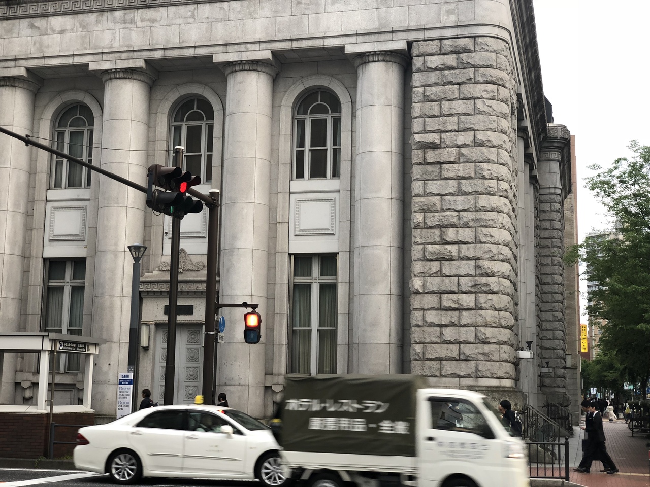みなとみらい線馬車道駅出てすぐのところにある白く四角い立派な建物です。