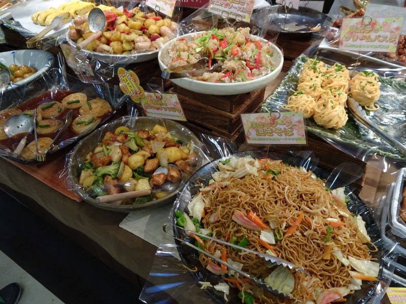 惣菜を量り売りする店で、沢山の種類の惣菜が並んでいます。煮物・焼き物、家庭料理のほとんどがあるので、これを買って帰れば自宅で何もしなくても良いかも。