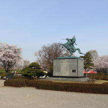 霞城公園の東門から入るとすぐにこの騎馬像が現れます。