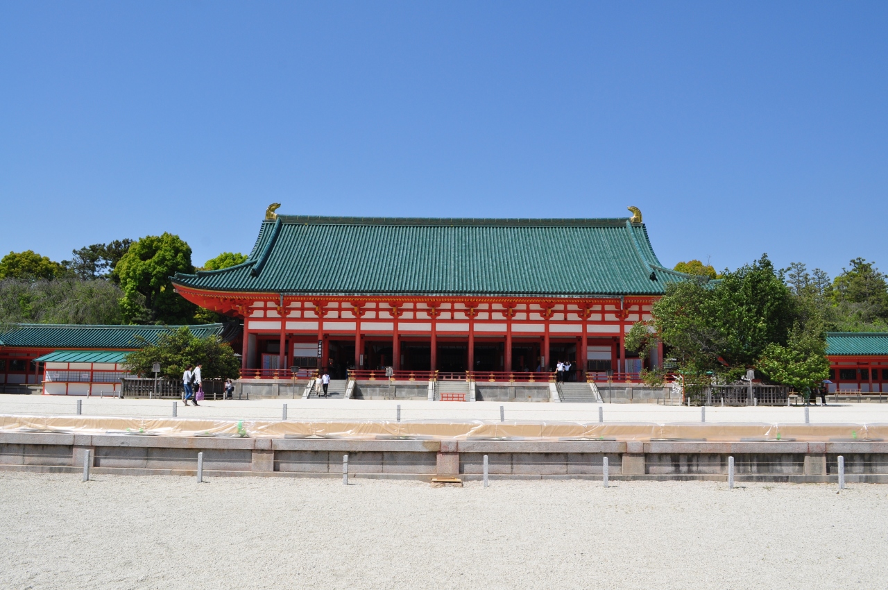 平安神宮の應天門を入ると正面に見えるのが大極殿になります。大極殿は1895年の平安神宮創建の際に、かつて平安京にあった朝堂院の正殿大極殿を再建したものになります。左右に白虎楼と蒼龍楼を有する大極殿は應天門のあたりからみると非常に美しく、非常に絵になります。朱色を基調とした建物はとても奇麗で晴れた日に訪問すればとても奇麗な写真が撮れるかと思います。