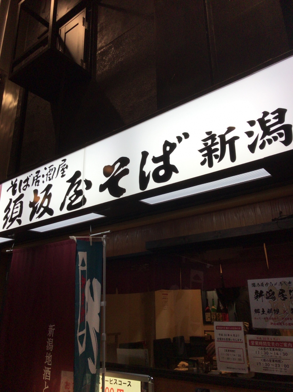 本町に分店ができたとのことで夜に初訪問。お店は新しいのでキレイめ、大人数の宴会にも対応できそうです。メニューは、本店と似ており、蕎麦居酒屋という感じ。新潟のメニューやお刺身もあります。しかし接客がいまひとつ…。やっぱり本店の駅前に伺うことにします。