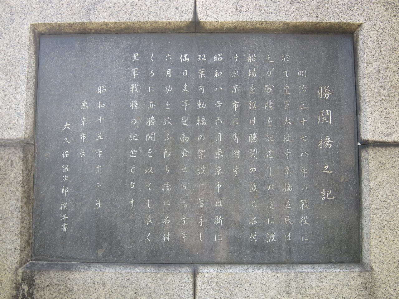 勝鬨橋が竣工、これを祝し記念碑を設置したそうです