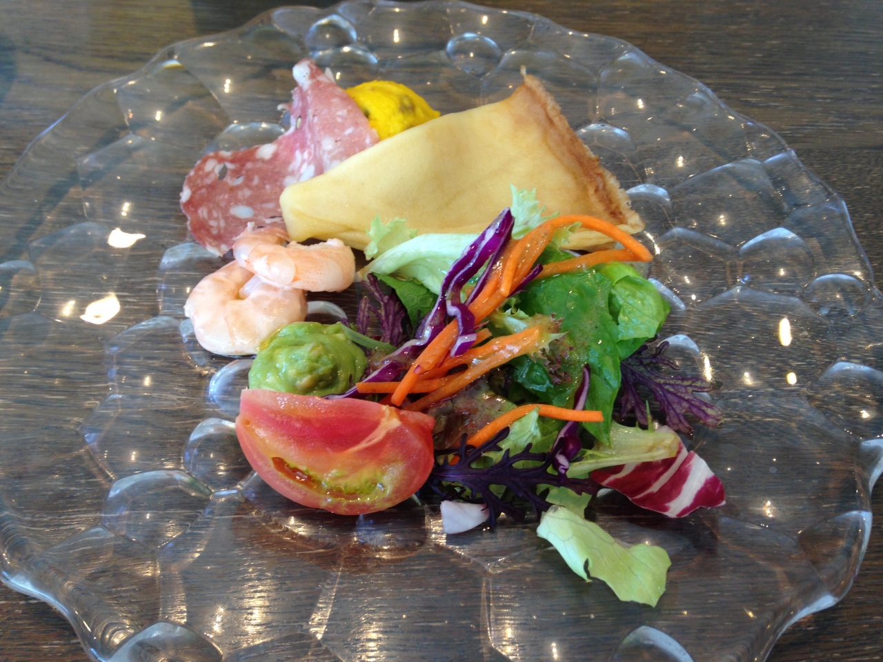 30分から1時間待ちとのことでしたが20分ほどで席は空きました。何隻も開いているのですが案内はなし。。。。途中で”もう少しで案内します”と言われ数組まとめて案内されました。。私たちの後のお客さんも4席くらい空いているのに通さずまとめて案内でした。待合席から店内でテーブルのセッティングができているのが見えるので直ぐ案内してくれる方が感じ良さそう。料理で一番美味しかったのは前菜、トマトが葡萄か?というほどの甘さと食感でした。サラミもcrepeも美味しかったです。同行者はパンプキンサラダ、エビが凄く美味しいと言っていました。