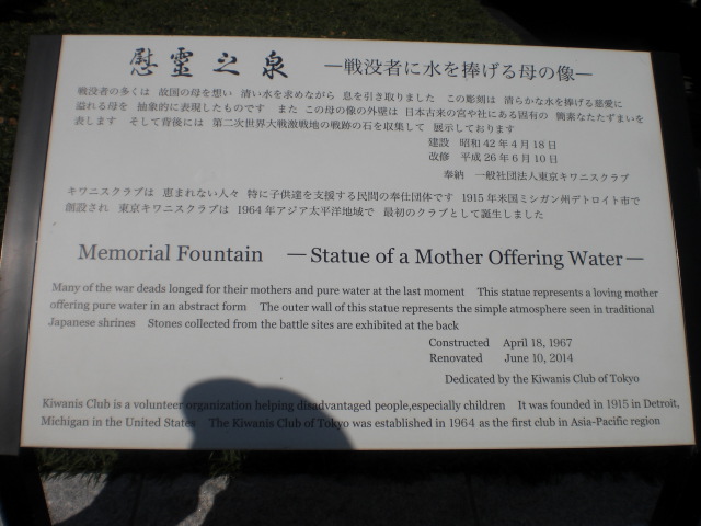 慰霊之泉の建設の中には、戦没者の求める母親の慈愛と清涼な水への思いを顕すことにより、慰霊としたいとの思いが込められているそうです。