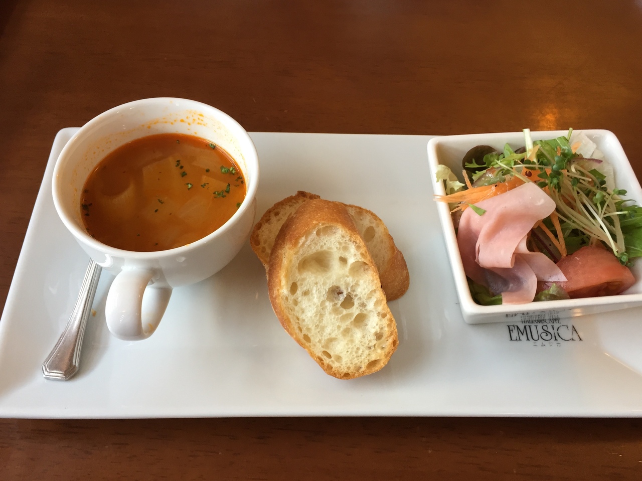 +サラダ、スープ、バケット、ドルチェとドリンクが付きました。