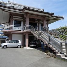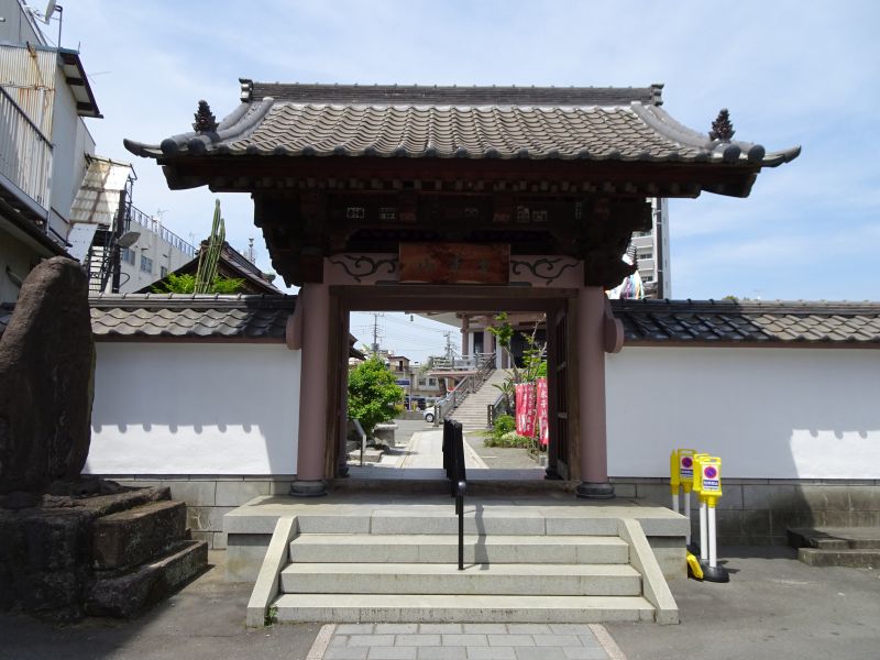 表に回って山門から眺めてみると、参道と本堂がなかなか立派です。本堂に入るのは長い階段を登ってあがるようです。一般的なお寺の雰囲気がしないお寺でした。