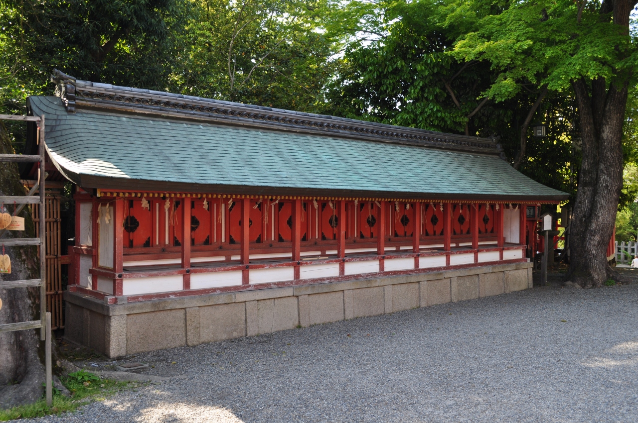 十社は八坂神社本殿のすぐ西に位置する社になります。10つの社がくっついた形をしているのでとてもわかりやすいかと思います。あまり詳しいことは案内板などには書かれていいませんでしたが、先日訪問した出雲大社にも同様の社(十九社)があり、神様の遙拝所として存在しているとの説明だったので、こちらの十社も遙拝所なのかな、と思いました。案内板に書かれていた十社の全てはわかりませんでしたが、おそらくは関西の神社が十社集まっているのではないかと思います。