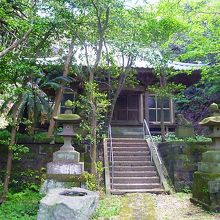 新緑の木々に囲まれた慈雲寺本堂と毘沙門堂