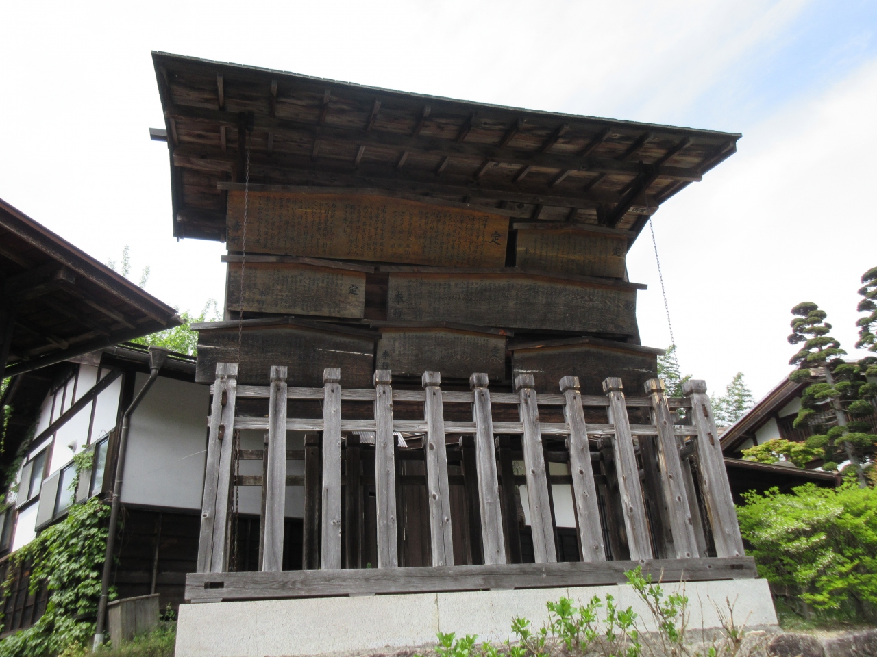 妻籠宿の最も北、坂道の上に建っています。江戸時代、幕府が庶民に対して新たな決まり事や禁じたことを示した掲示板です。禁じごとを破った者への処罰や、破った者を報告した者への褒美などについても掲示されたようです。馬籠宿にも全く同じ形をした高札場が残っていました。どちらも決まり事を徹底するために使われたと思いますが、高札一つで徹底するなど現代では考えられません。いかに情報量が少なかった時代だったかがわかります。