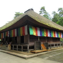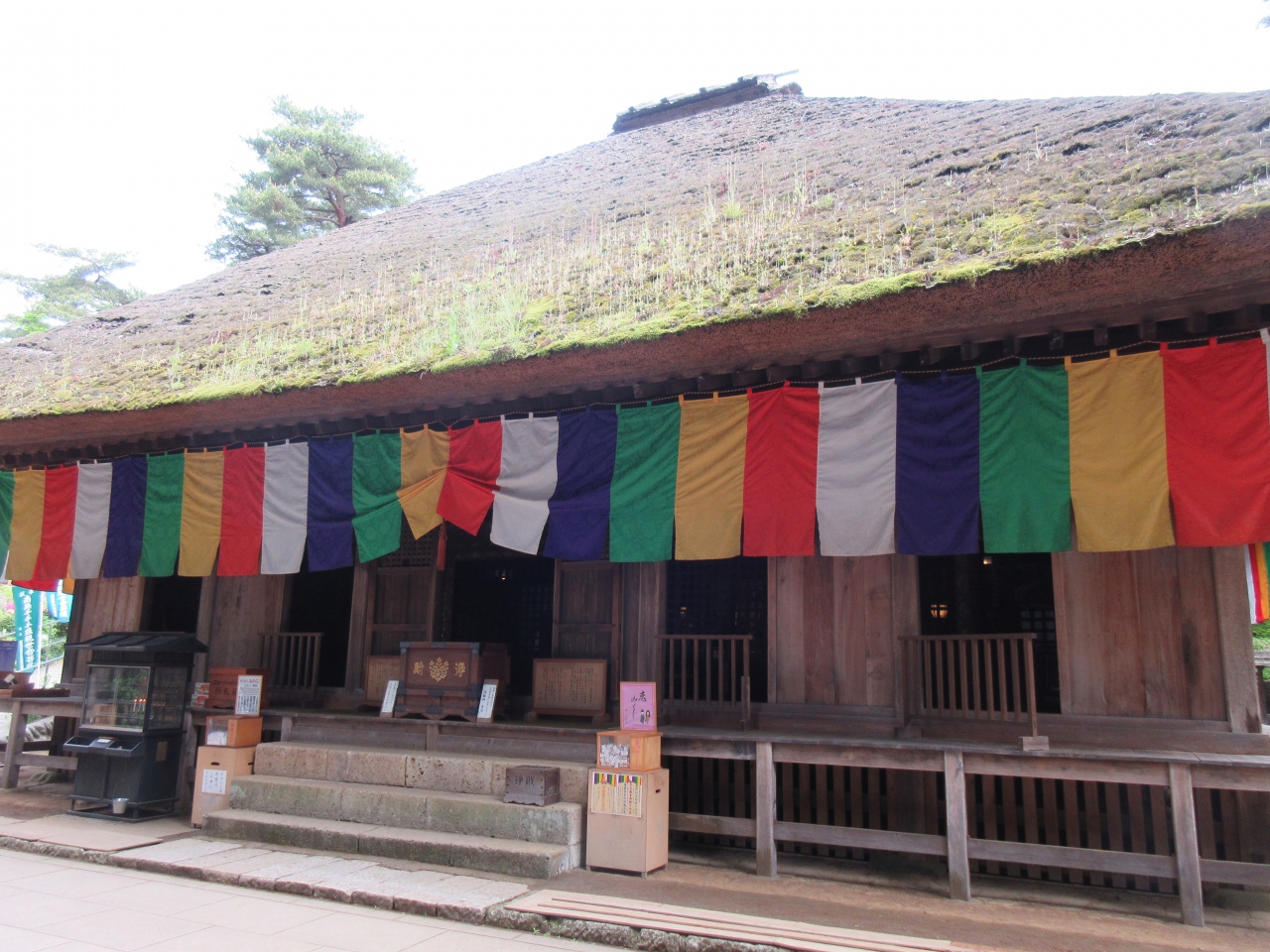 青梅ICから車で10分の塩船観音寺にあります。境内のほぼ中央に建っています。木造で屋根は茅葺に杉皮を葺き込んだ混ぜ葺が特徴です。屋根の厚さは80cmくらいあり、草が生えていて風情があります。素朴な趣ある国指定重要文化財です。扉が開いていて堂内を見ることができました。つつじを見に出かけましたが、本堂をはじめとする境内の古い建物の雰囲気が気に入りました。