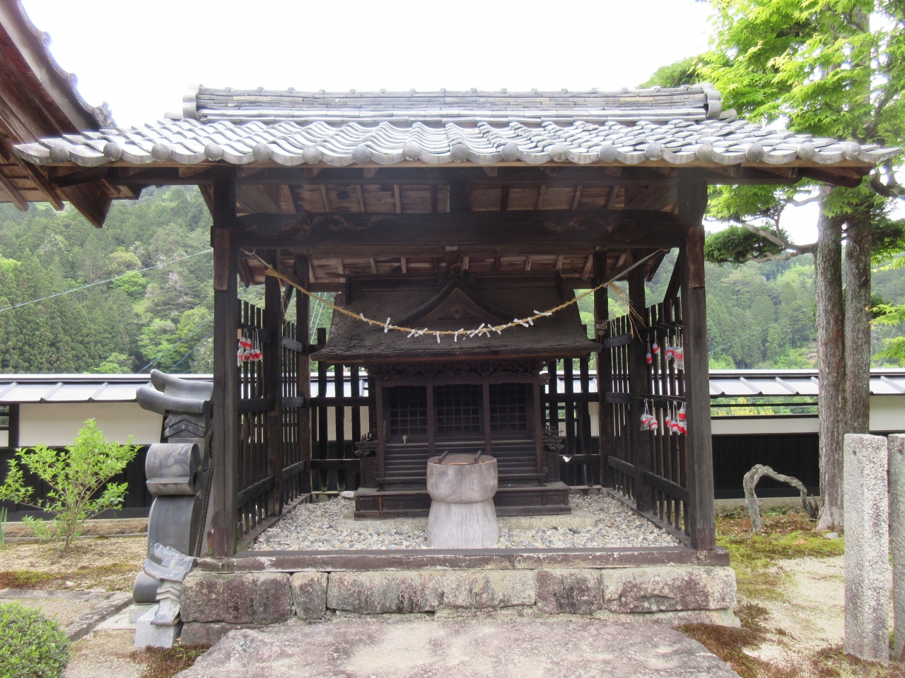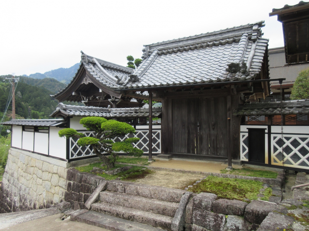 妻籠宿のほぼ真ん中の山側に建つ臨済宗寺院です。1500年に開山したと伝えられています。古い山門は閉じられていて、横の新しい山門から境内に入ります。本堂は木造銅板葺で、本堂手前に小さな木造お堂が祠の中に建っています。祠にフエルトでできた小さい身代わり地蔵が奉納されていました。光徳寺の特徴は庫裏にある日本初の人力車と言われている車付駕籠です。庫裏の土間に展示されています。駕籠と用途別の車輪が二組あります。住職が考案設計し江戸末期から明治にかけて住職が使用していた人力車の祖型で赤い車輪がオシャレです。住職が乗る姿を想像してみました。妻籠宿の先進的な乗り物だったことでしょう。