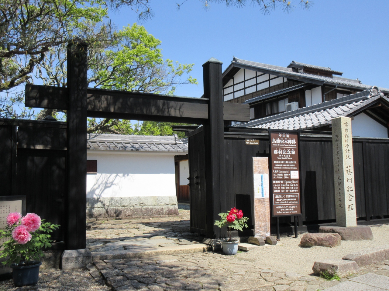 馬籠宿の真ん中にある馬籠本陣跡に建てられた博物館です。島崎藤村の生家が現在地にあり、藤村が9歳で上京する前に過ごした場所です。夜明け前の原稿や書簡や遺品などが展示されている島崎藤村の文学館です。馬籠本陣を象徴する冠木門は復元されたもので、馬籠宿の建物の中で目立ちます。通り沿いに並ぶ土産物屋や観光客の賑わいに疲れたら、藤村記念館や史料館などに寄り、ここで生活した人々の様子に触れてはいかがでしょうか。島崎藤村に興味のある方に特におすすめです。