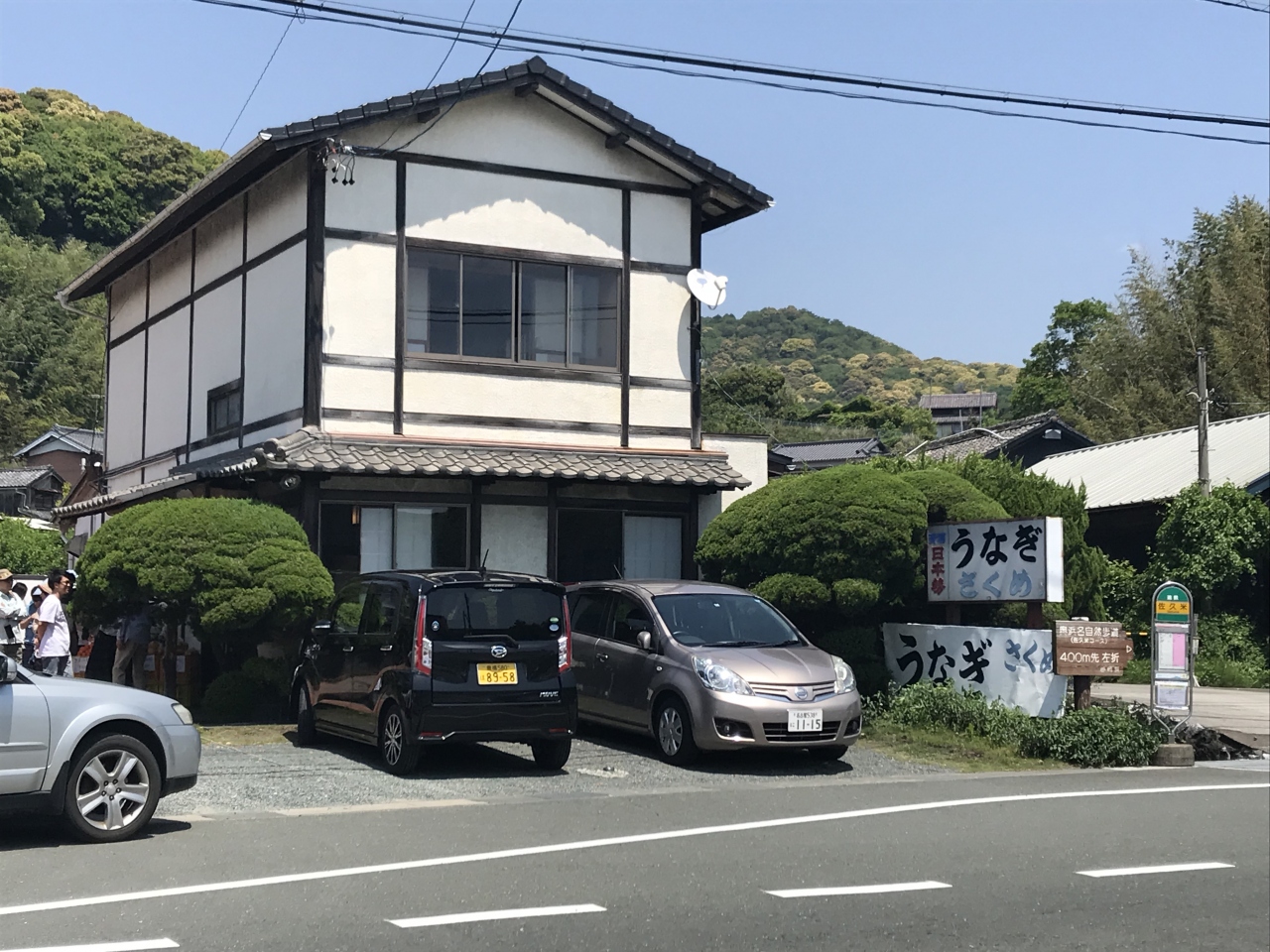 浜名湖一周サイクリングのちょうど中間点あたりの浜名湖佐久米駅で休憩をしようと思っていたら、ちょうど駅前に鰻屋さんを発見。結構有名な店のようで、11時くらいですでに数グループの待ちが出来ていました。とりあえず店に入って、順番待ちに記入して名前を呼ばれるのを待ちます。