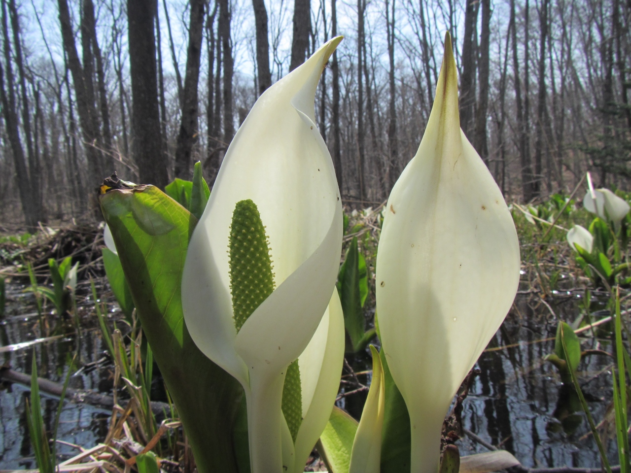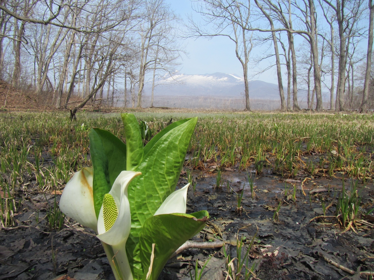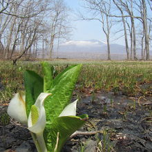 ただ、木々が葉を落としているため、白く優しげに咲くミズバショウの背景に木々の隙間から駒ケ岳が見える場所もあって、良かったです。