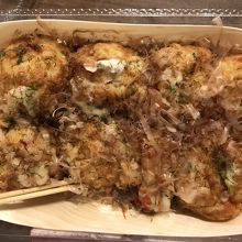 たこ焼きは大き目。8個で350円はリーズナブル。個々の店の特色はたこ焼きの味。ぼうず(何もかけない)、ソース、ソースマヨネーズ、しょうゆ、しょうゆマヨネーズ、ぽん酢、ぽん酢マヨネーズ、塩、塩マヨネーズから選ぶことが出来ます。また、キムチをのせることも可能(別途100円)。塩マヨネーズを頼みましたが、ソースに比べあっさりして美味しい。