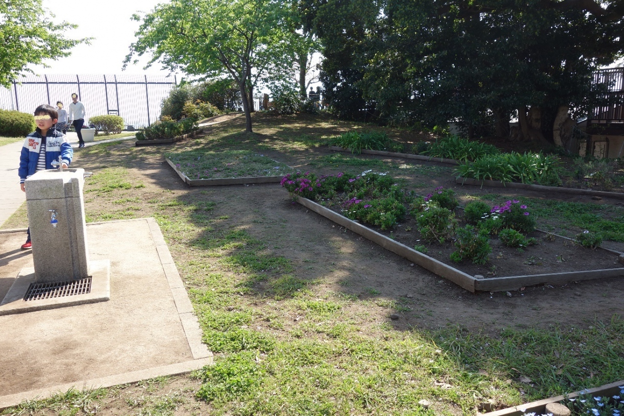 江の島のサムエル・コッキング苑のちょうど前あたりにある広場です。草地に遊歩道があったり海側へ進むとウッドデッキの展望スペースがあって、そこから海の眺めがきれいでした。晴れていた日でしたが木陰もあって海風がさわやかに感じられました