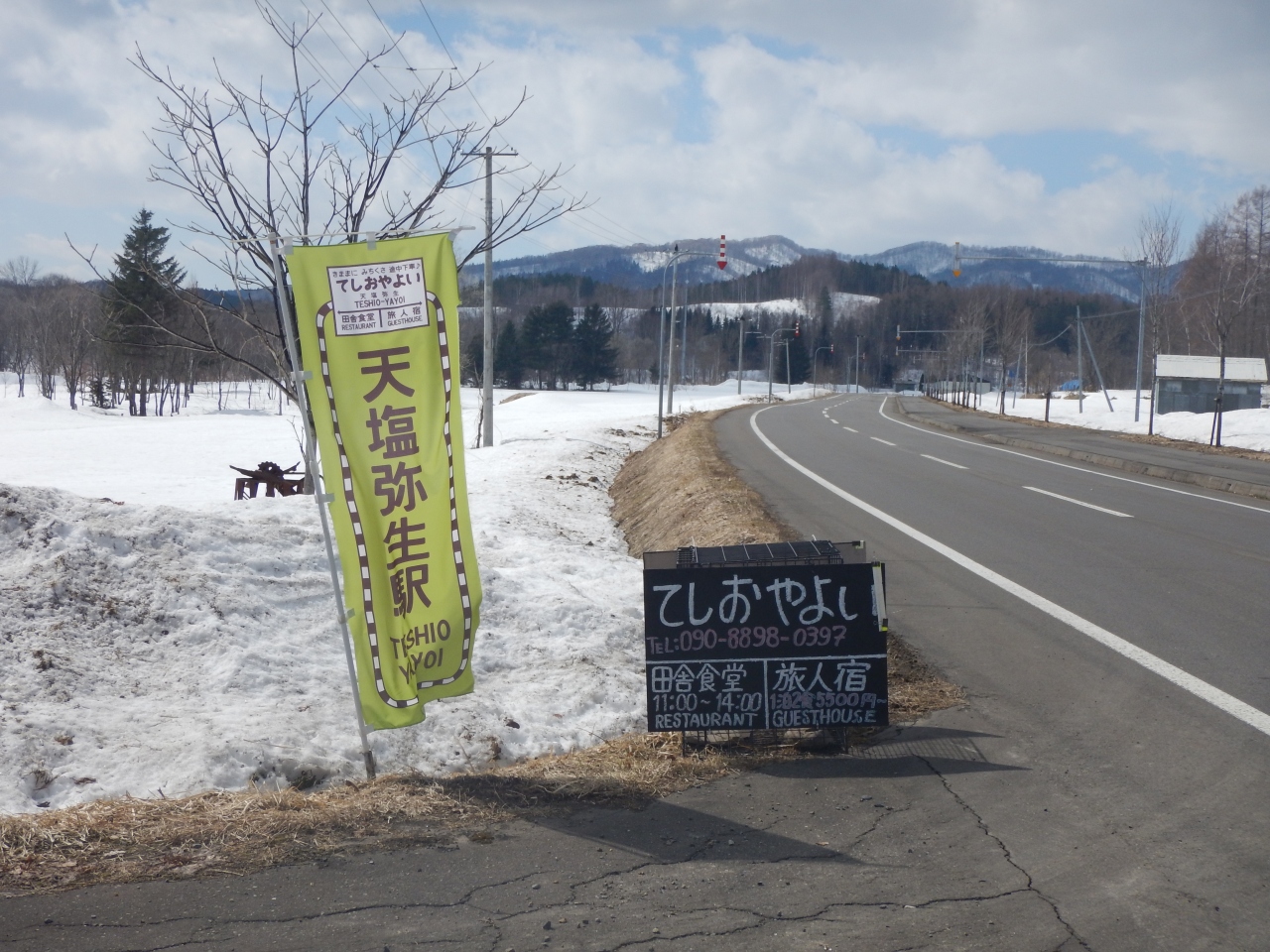 名寄駅前から天塩弥生駅まで乗る。天塩弥生駅といっても駅ではなく、駅の跡にできた宿の名前だ。バスの本数が少ないので、名寄行きのバスが来るまでの時間、宿で食事をした。バス料金は230円とそれほど高くなかった。