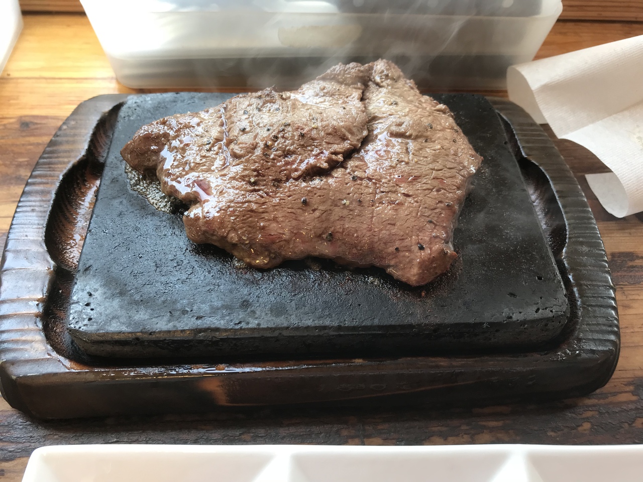 富士山の溶岩に乗ったステーキは値段以上の価値ありです!!