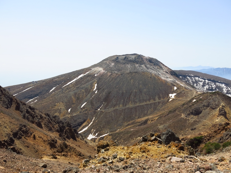 ただし、途中から火山特有のゴツゴツの岩場、ザレザレの登山道になるので、山頂を目指すなら足元はしっかりと。