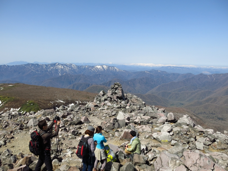山頂からは那須岳を構成する朝日岳、三本槍岳を見渡すことができ、上越地方の山々がよく見えます。