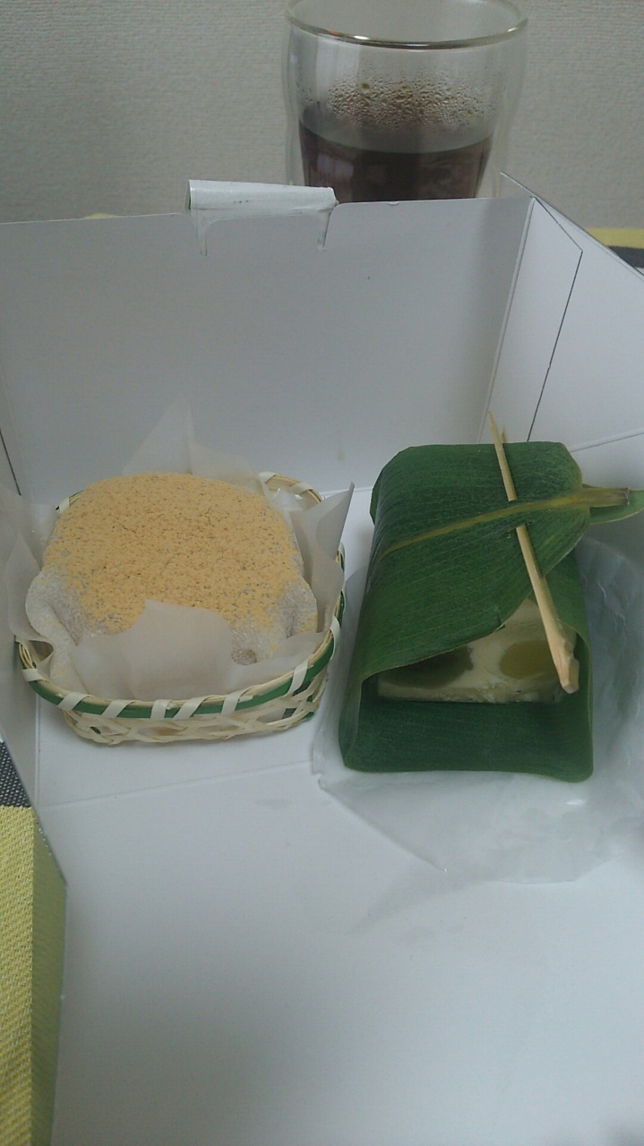 柚子の大福の入ったレアチーズケーキとわらび餅のお餅でケーキを包んだものをいただきました。