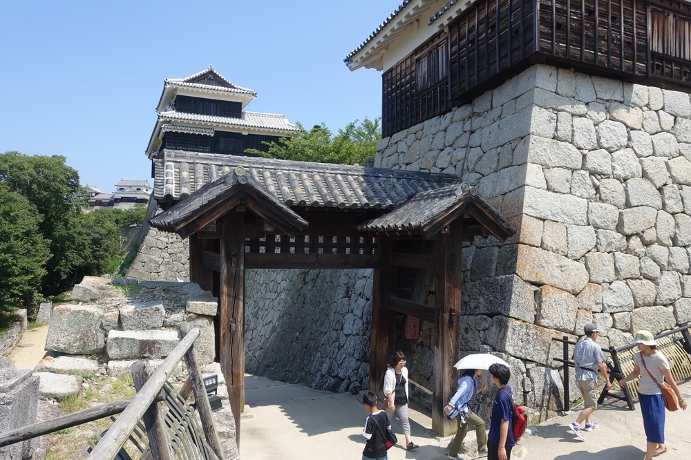 ロープウェイまたはリフトの長者ヶ平駅から進んだ場合、一番始めに通過する門です。その名前のとおり戸(門扉)が無く、門の枠と屋根だけがあります。小さな門ですが築城当時から現存する建造物なので歴史を感じます。