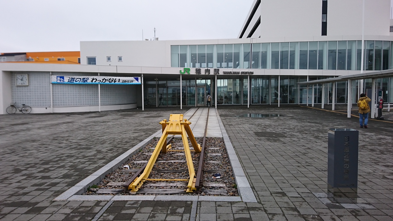 日本最北端の駅。ホーム一面、片側だけの線路は、札幌からの特急列車の終着駅としては少し寂しいものがありますが、ホームには東京や姉妹駅である枕崎(日本最南端のみどりの窓口のある駅)等からの距離を書いたものが貼ってあったり、到着の際の駅の放送では日本最北端の駅であること流すなど、この先に線路はないことを感じさせます。駅はJRだけでなく、道の駅、宗谷バスの稚内駅ターミナル、映画館、お土産屋さん、コンビニ(セイコーマート)が一体化したもので都会的。旅情がないという意見もありますが、一ヶ所に集約された駅として便利です。