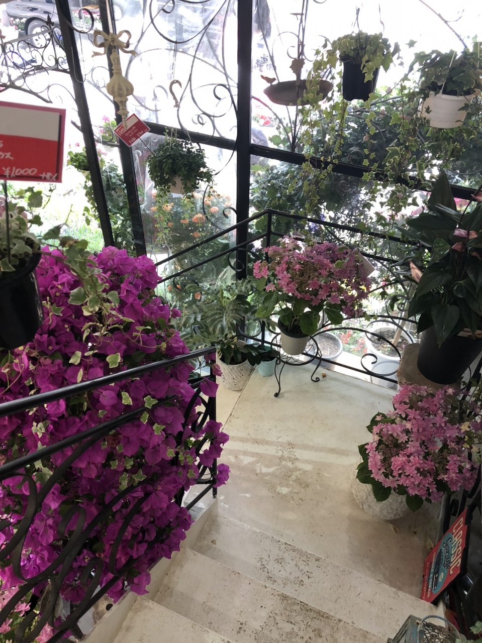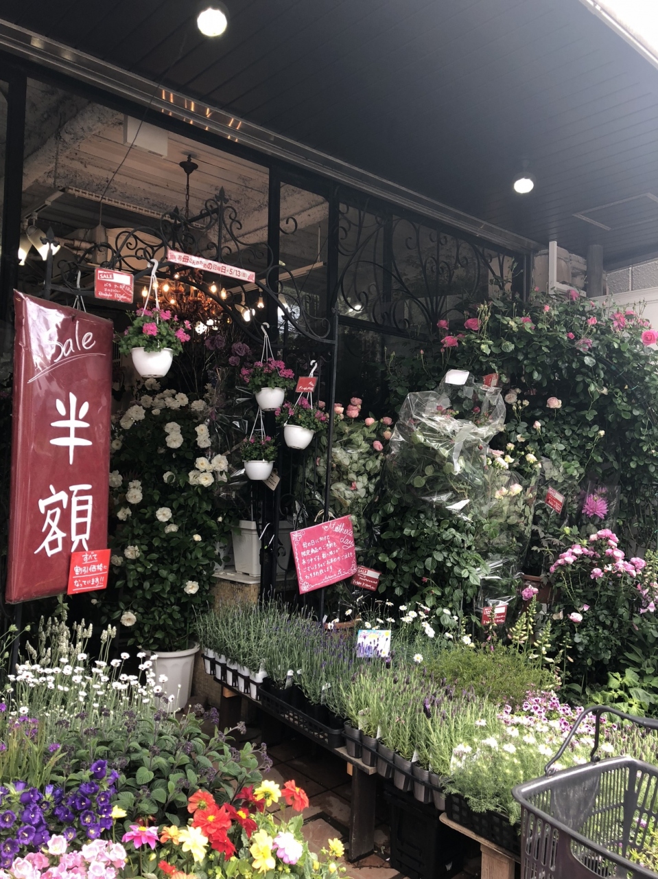 JR石川町駅の元町側出口からでてすぐのところにあるお花屋さん。間口の広いお店ではないのですが、外にお花やハーブ苗がズラリ並べられていて、全部半額!(いつも…?)で確かに安い。薔薇の鉢も沢山並んでいて、安いし、どんどん搬入されていきます。山手のお家でガーデニングに使うんでしょうね。2階のガーデニンググッズや、階段の雰囲気も素敵で、元町でよく覗くお店の1つです。