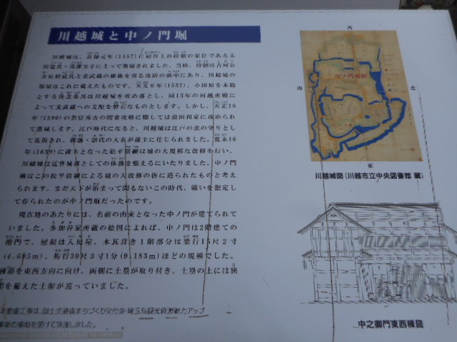 川越の散策で訪問です。散策途中であったので見学しましたが、わざわざ行くほどではないかもしれません。木の門があってその奥に昔敵を防ぐために設けたという堀の跡がみられます。説明もあってわかりやすいですし、きれいなので見やすい場所です。