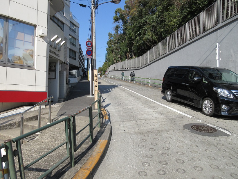 麻布十番方面からアクセスすると急こう配の坂を上がることになります。