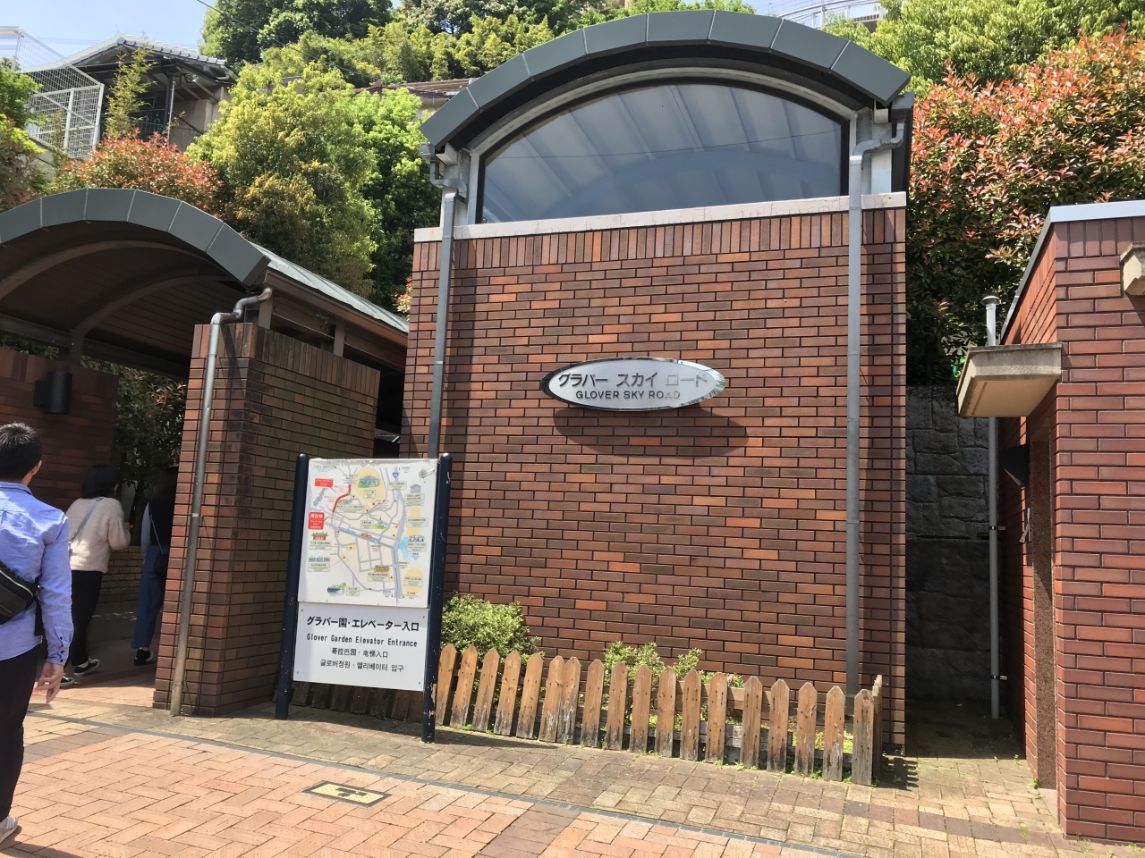 路面電車で石橋駅を降り、右手に曲がると見えてきます。珍しい斜行エレベーターで、一気に上まで登れます。しかも無料です。これで登ってグラバー園に入るとあとは下るだけなのでお勧めです。円い窓から景色も見えますよ。