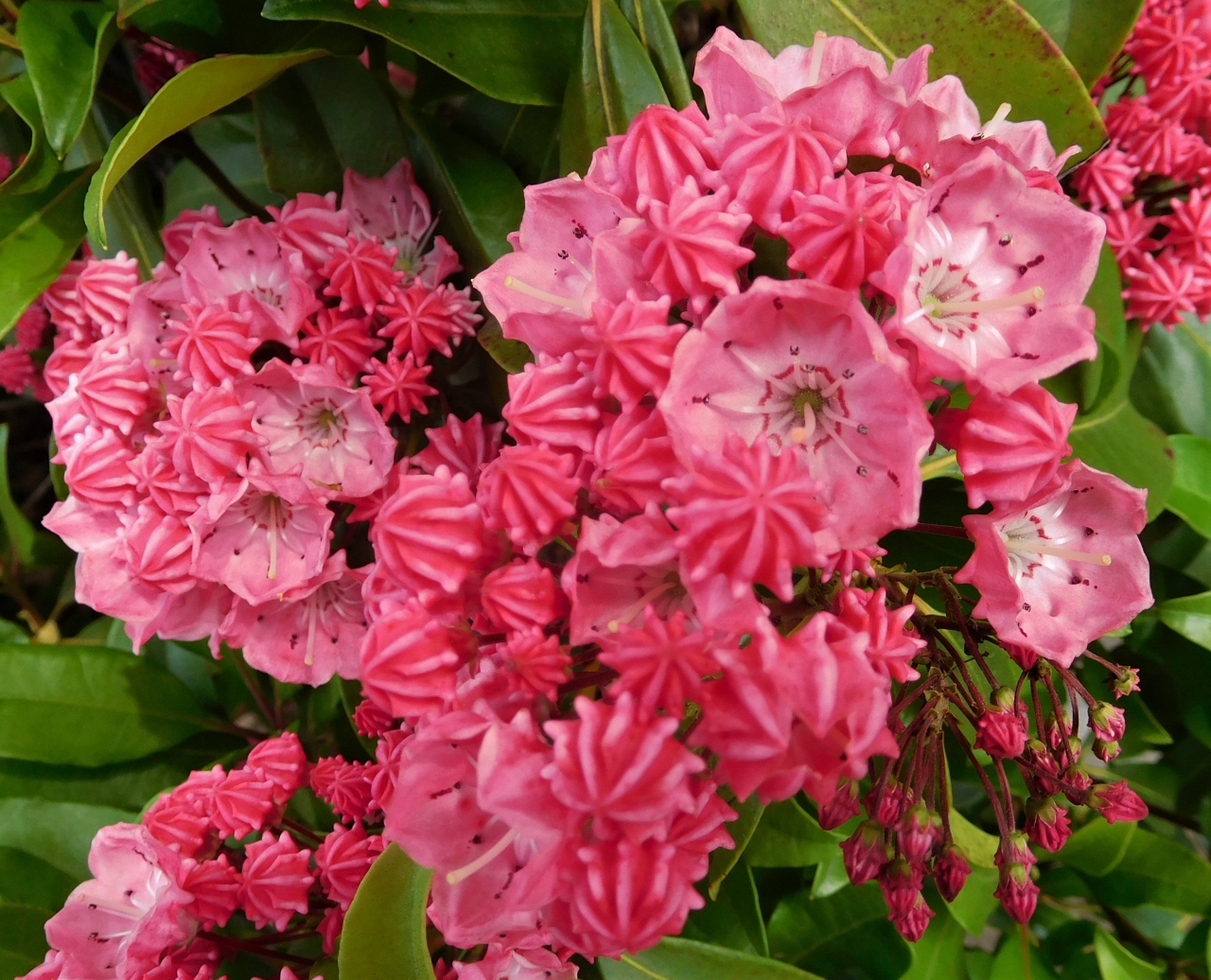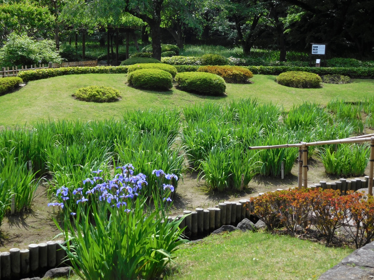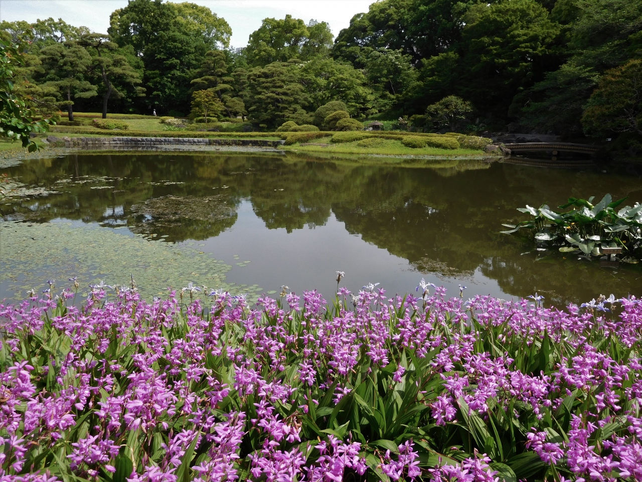 二の丸庭園では名前が分からないけど藤棚の近くにピンク色の花が咲いていました。