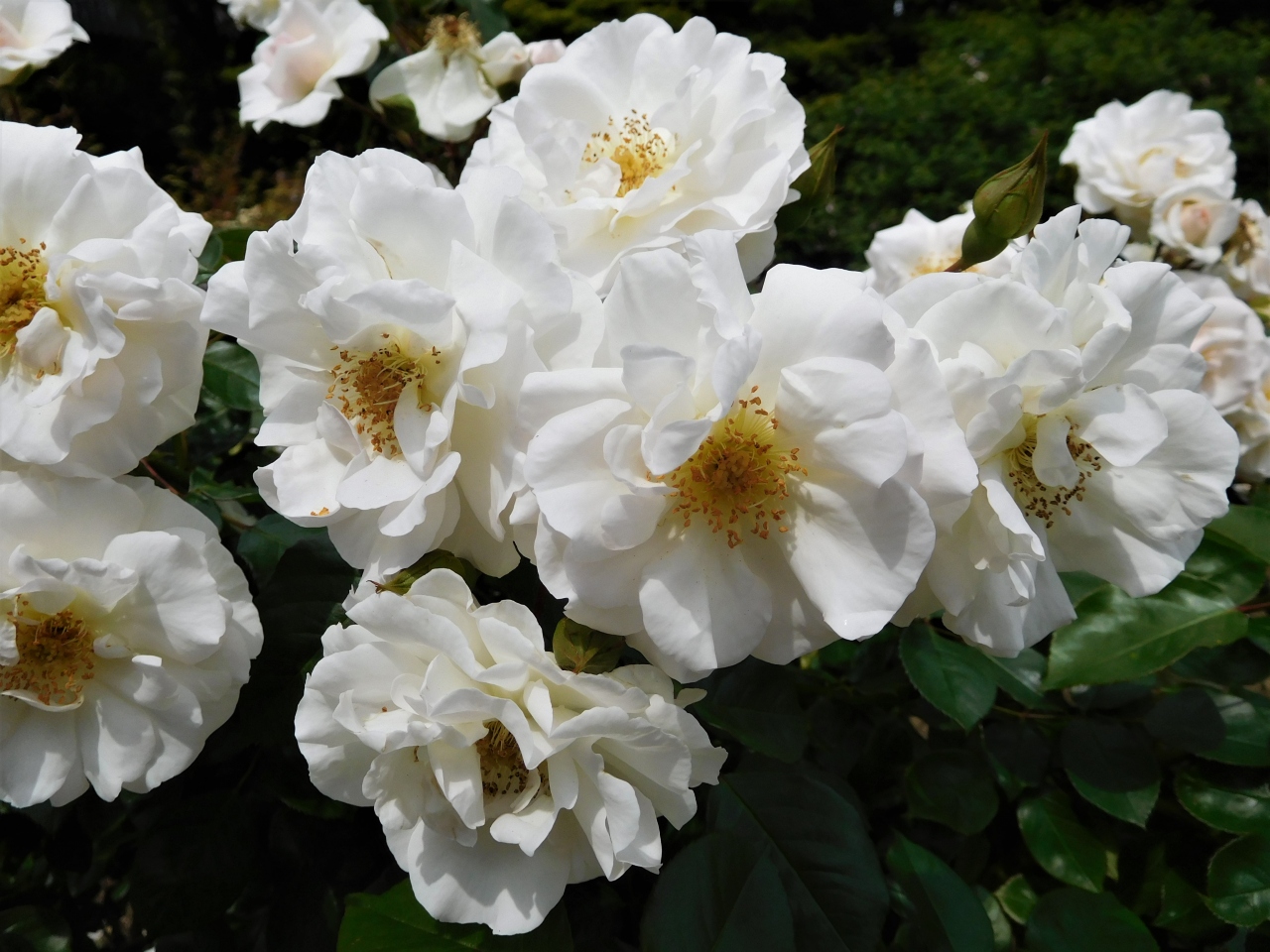 5月中旬はバラの花、コウホネ、ヒメコウホネが咲いていました。